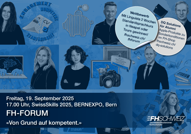 FH SCHWEIZ ist stolz, erneut dabei zu sein. Neben unserem Stand von «meindschungel.ch» werden FH-Botschafter:innen Führungen machen und dabei den Erfolg der Berufsbildung an ihrem eigenen Beispiel aufzeigen. Ausserdem finden in diesem Jahr der Nationale Bildungspreis (17.09.), das FH-Forum (19.09.) und die HES-Soirée (19.09.) von FH SCHWEIZ ebenfalls im Rahmen der SwissSkills 2025 statt.